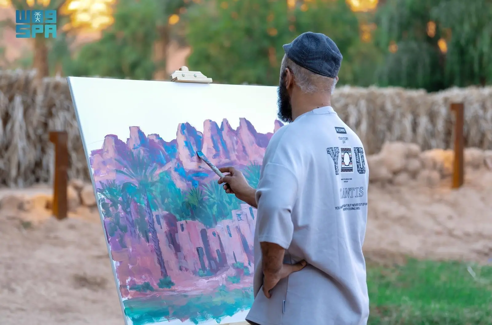 An art exhibition opened on Friday evening in AlUla, with the participation of 25 male and female artists from various countries. They presented diverse artworks inspired by AlUla’s oases, rich historical heritage, cultural diversity, and natural beauty, expressed through multiple artistic schools and styles.