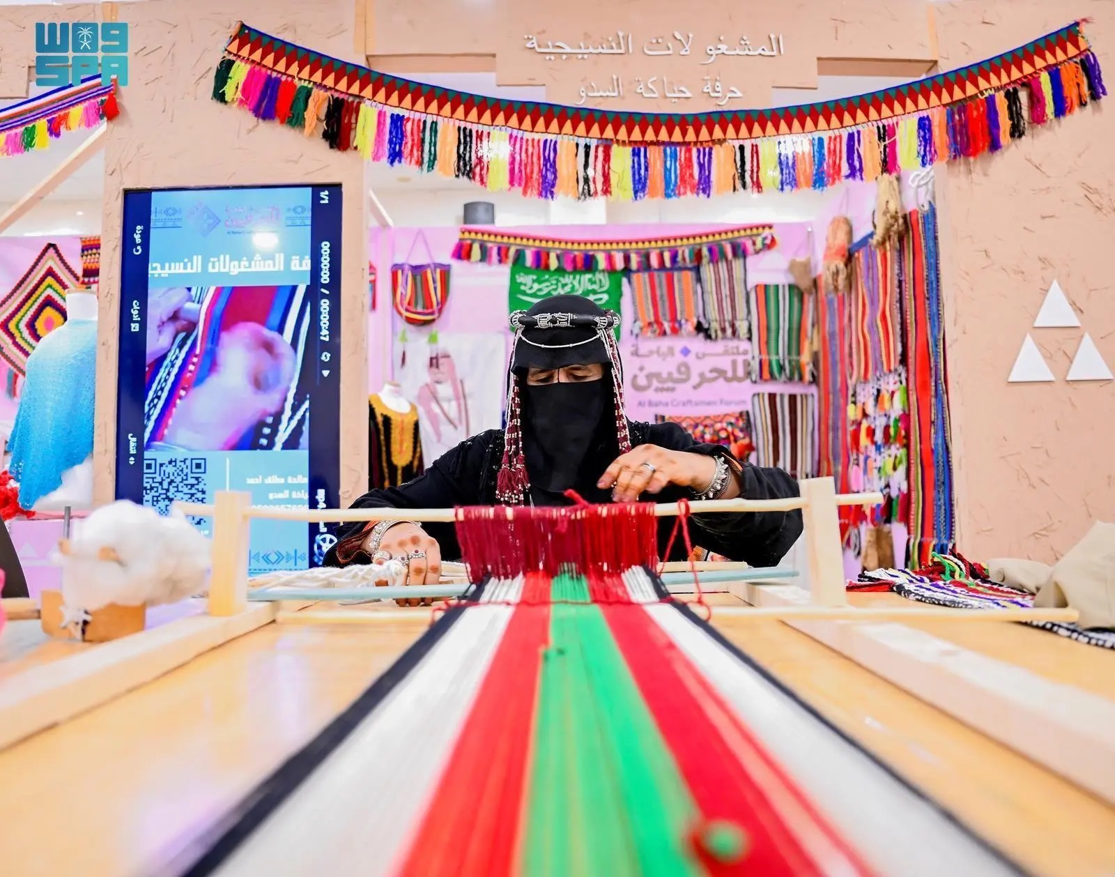 Al-Baha Craftsmen Forum 2025, held in a traditional setting that celebrates the authenticity of local heritage, drew large crowds to the "Sadu Weaving" corner—one of the forum’s standout attractions due to its deep cultural significance and artistic elegance, authentically crafted by Saudi women artisans.