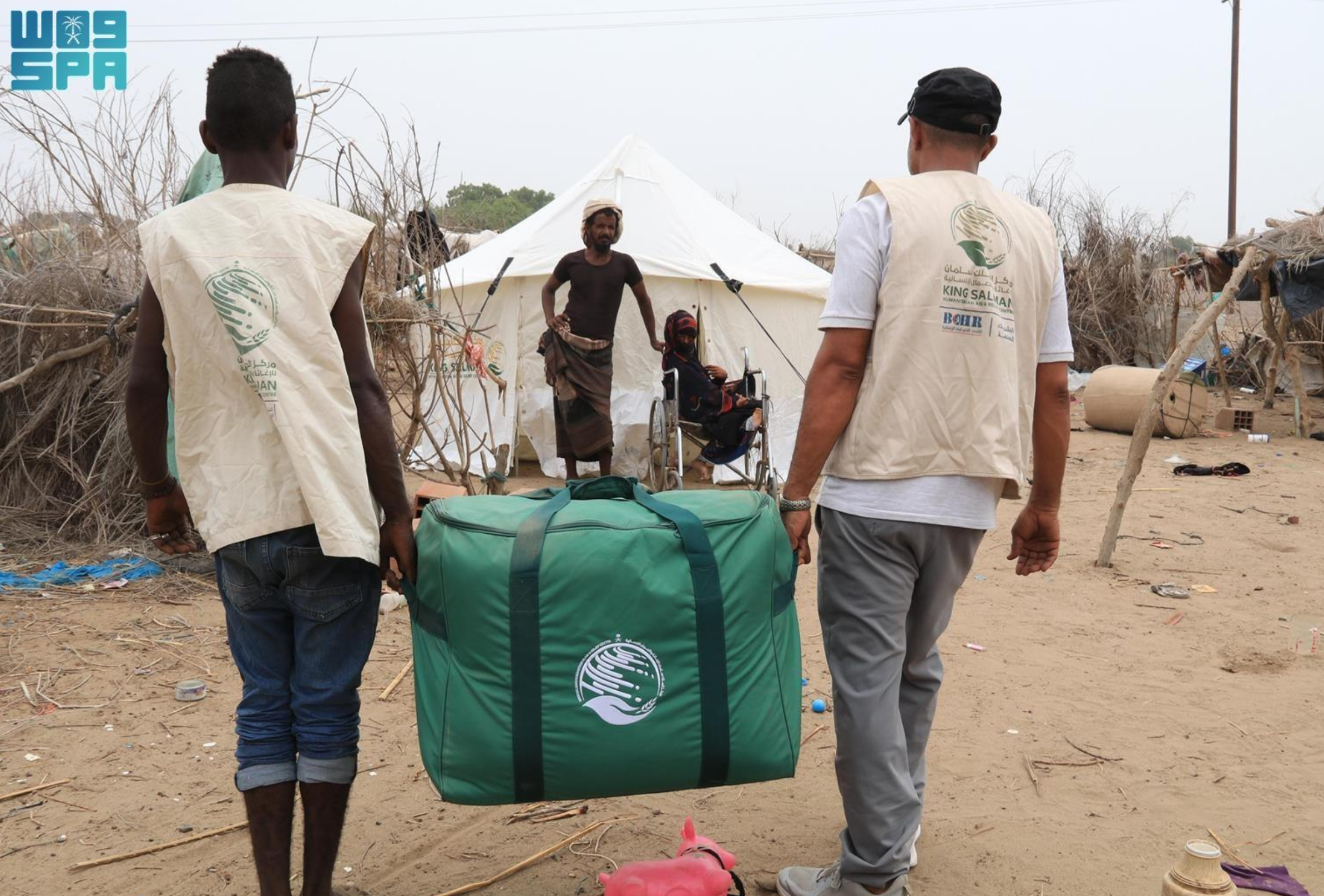 The King Salman Humanitarian Aid and Relief Center (KSrelief) yesterday distributed 70 tents and 70 shelter bags to families affected by rain and floods in the Tuban District of Lahij Governorate. A total of 490 individuals, representing 70 families, benefited from these supplies under the emergency shelter project in Yemen.
