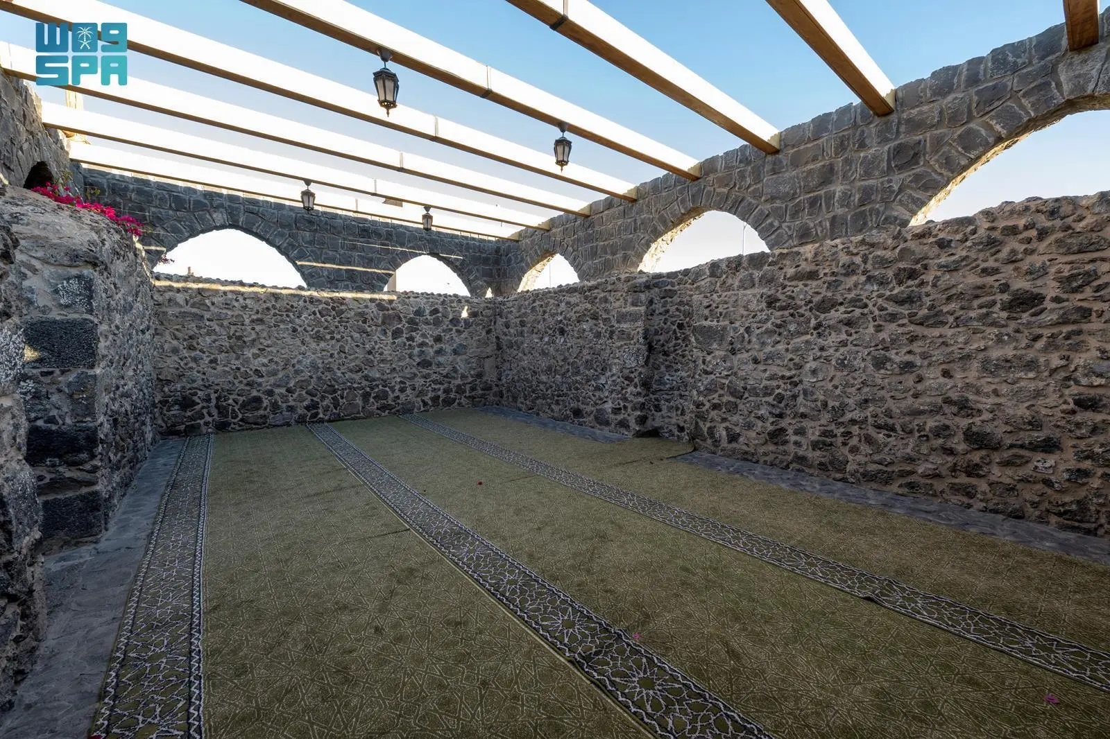 The mosque has undergone several restorations and rehabilitation works as part of the Historic Mosques Care Program during the era of Custodian of the Two Holy Mosques King Salman bin Abdulaziz Al Saud. The implementation took into account preserving the site’s historical identity, leaving its roof open to maintain its historical character, installing spaced wooden columns to reinforce the stability of the walls and allow natural ventilation, and hanging lanterns for lighting in harmony with the mosque’s heritage environment.